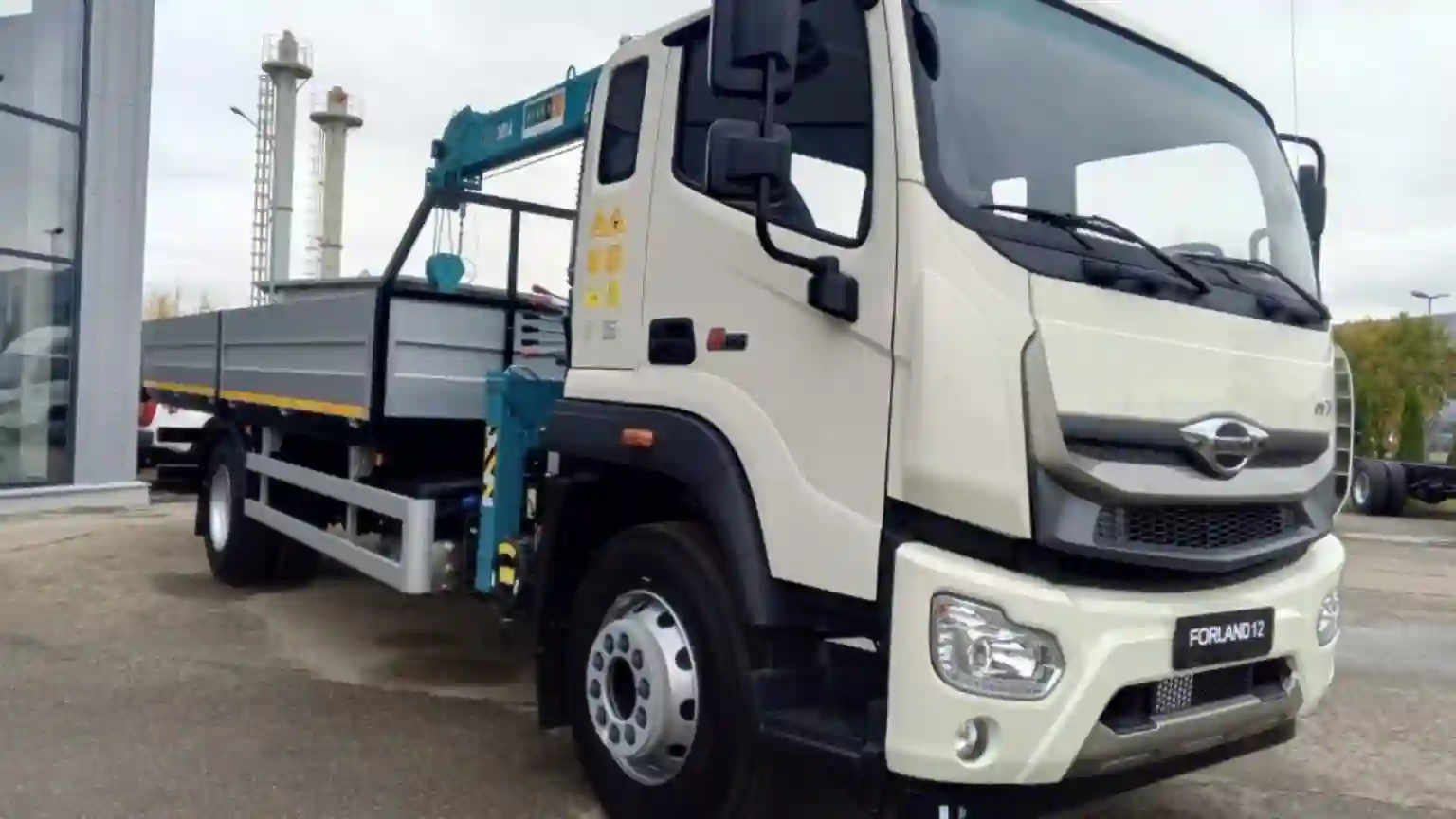 Шасси доступно с двумя вариантами колесных баз: 5150 и 5750 мм, снаряженной массой 4570 и 4840 кг соответственно. Длина рамы под надстройку до 8200 мм позволяет установить платформу до 8500 мм без увеличения колесной базы. В шоу-руме дилерского центра представлен бортовой грузовик с КМУ, самое востребованное транспортное решение на базе Forland 12. При полной массе 11 990 кг грузовик не попадает под систему «Платон», которая взимает с большегрузов плату за проезд по дорогам федерального значения. Стоимость на эту модель начинается от 5,5 млн рублей.
