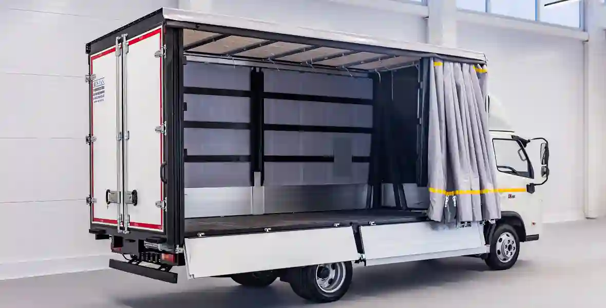 Благодаря изготовлению бортов из прочного анодированного алюминия, облегчённым стойкам и применению пластика при производстве дверей удалось снизить вес надстройки и сохранить ее максимальные размеры. Для надежного закрепления груза в обвязочном профиле предусмотрены такелажные петли. Еще одно важное преимущество кузова – высокопрочный тент плотностью 650 гр/м, который сохраняет эластичность при низких температурах воздуха и обеспечивает защиту груза.